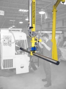Cynergy Ergonomics provides industrial ergonomic articulating arms, articulating jibs, torque arms and other custom ergonomic lifters to meet unique material handling requirements. Ergonomic industrial articulating arms / manipulators and special lift assist devices are ideal solutions for challenging applications where operators are reaching into a work space or lifting something that is obstructed by overhead heights.