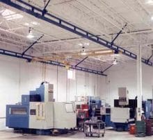 When a work area must be free from any support structures that may interfere with operations, ceiling mounted bridge cranes are an excellent solution to keeping floors clear. Handling capacities up to 4000 lbs. with overall bridge lengths up to 34 ft., these systems are pre-engineered and modularly designed for easy installation, expansion, and relocation. Customers can install multiple bridges along one set of runways and greatly increase their productivity.